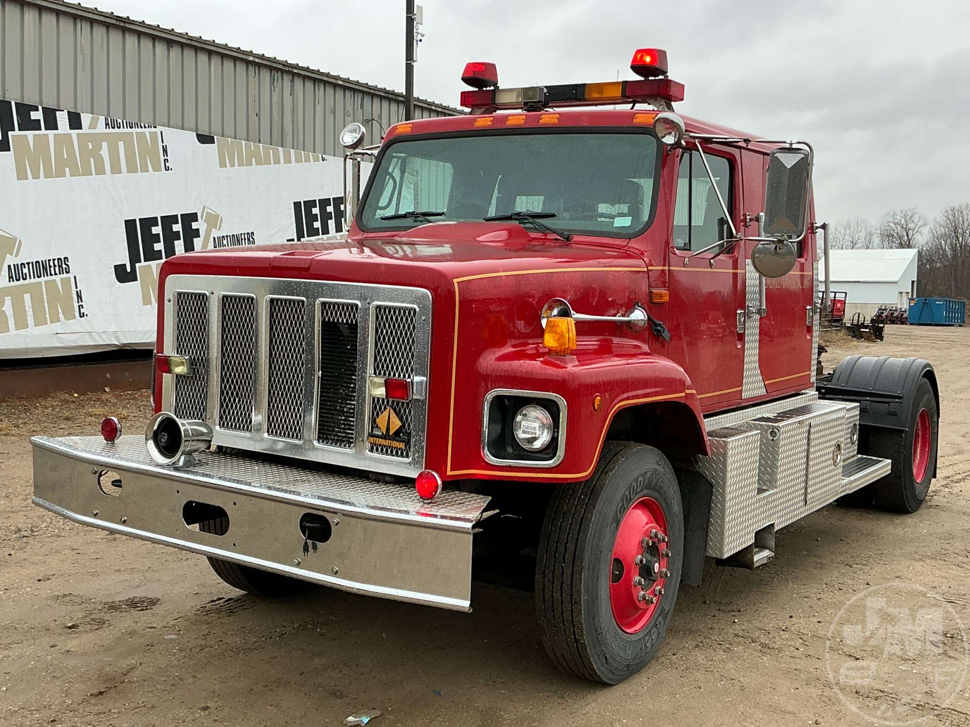 SINGLE AXLE DAY CAB TRUCK TRACTOR, DETROIT, EATON FULLER, 8 SPEED, SPRING SUSPENSION, ODOMETER READS: 657083, ***INOPERABLE*** GENERATOR POWERS CRUSHER ******NOT REQUIRED TO BE TITLED IN NEW HAMPSHIRE...