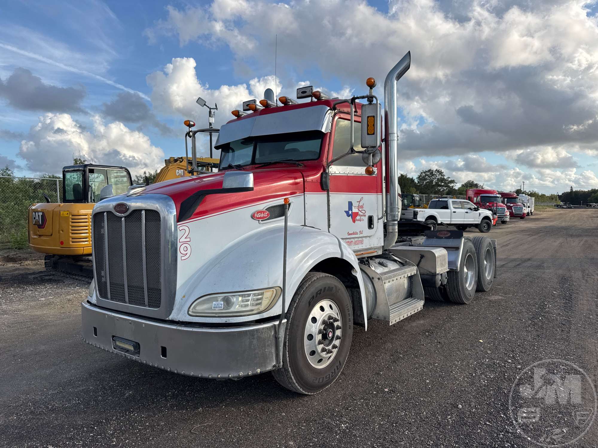 TANDEM AXLE DAY CAB TRUCK TRACTOR, CATERPILLAR, C13, EATON FULLER, 8LL, AIR RIDE SUSPENSION, DRUM, 190" " WB, C/A: 92", 12K FRONTS, 40K REARS, 52K GVWR, STATIONARY FIFTH WHEEL, A/C, AIR...