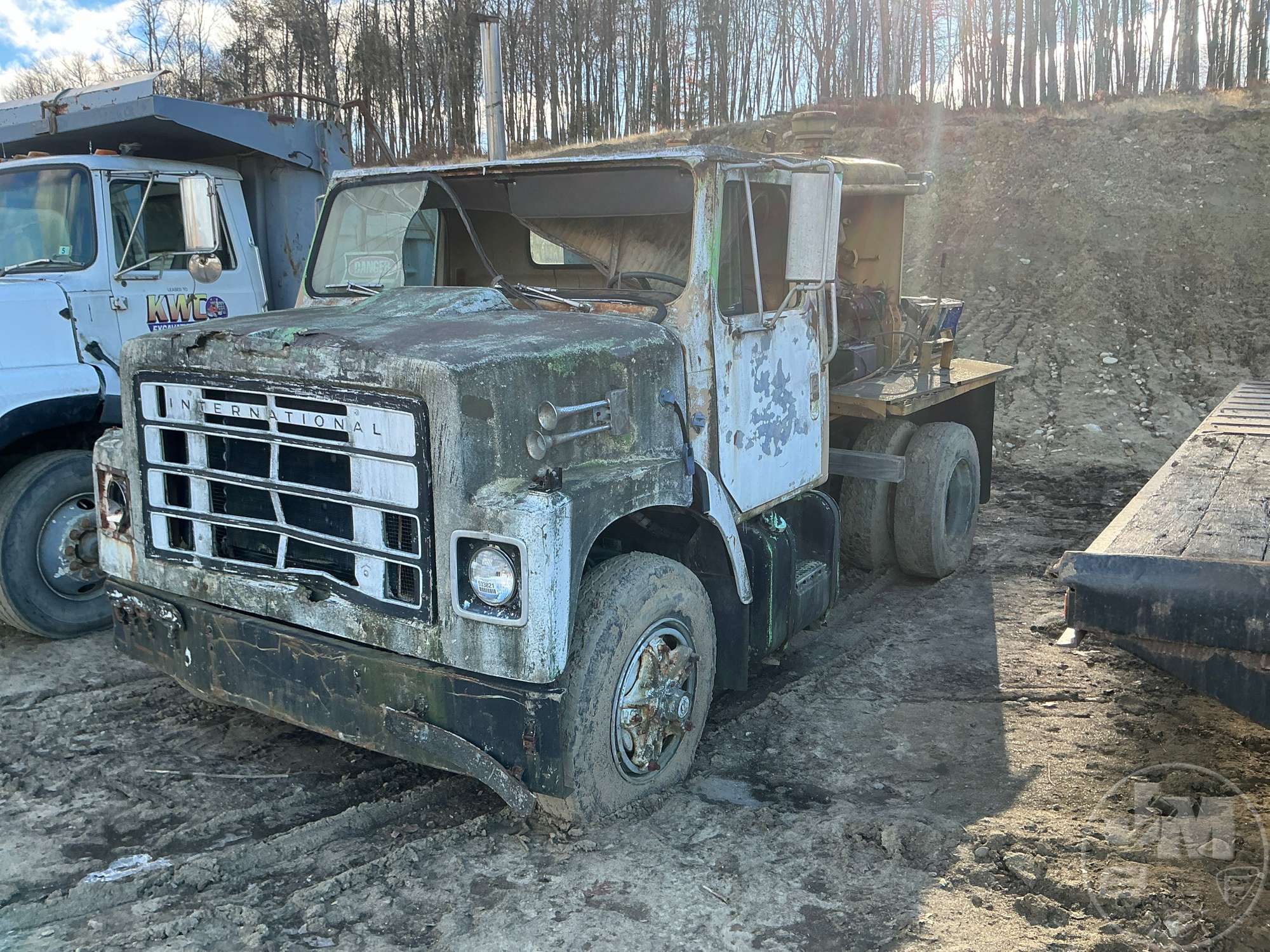 SINGLE AXLE ROLLBACK TRUCK, REGULAR CAB, 20', STEEL BED, INTERNATIONAL, DT466, 6 SPEED, SPRING SUSPENSION, WHEEL LIFT, WINCH, HEADACHE RACK, CRUISE CONTROL, 218 " WB, 25500 GVW, STEEL DISC WHEELS...