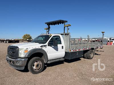 Located in Lane 22 Spot 12, International DT466 6 Cylinder 7.6 L Diesel 520 hp Engine, 2003 US EPA Label, 295/75R22.5, Spring Suspension, 194 in Wheelbase, Stake Side Flatbed, In-Cab Attenuator Contro...